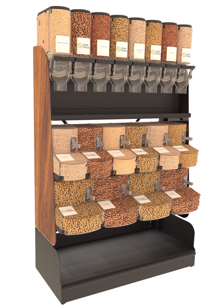 Bulk-in-a-Box Kits from Trade Fixtures™ offer a fast, flexible way to boost bulk food sales. With 12 ready-to-go configurations, these kits offer everything needed to turn unused store space into a profitable, sustainable bulk destination, including scoop bins, gravity bins and nut grinders.